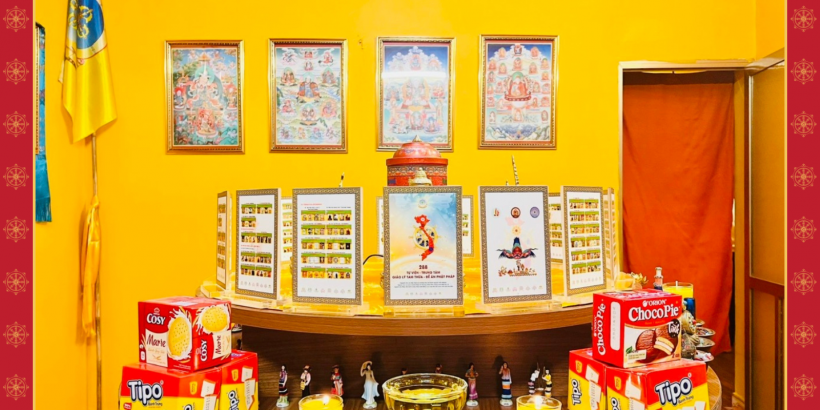 Việc lau chùi đế mạn đà la này không chỉ tẩy sạch bất kỳ bụi bặm nào trên đế. Đây cũng là một cách nỗ lực dụng công để tự giải thoát khỏi hai chướng ngại ngăn che tâm thức chúng ta. Chuyện kể rằng các hành giả Kadampa vĩ đại trong quá khứ đã lau chùi mạn đà la của các Ngài bằng mặt dưới cổ tay cho tới khi da mòn đi và bắt đầu làm thành các vết thương. Các Ngài vẫn tiếp tục và dùng tới cạnh của cổ tay. Khi vết thương hình thành ở đó, các Ngài thay thế bằng lưng cổ tay. Vì vậy khi tẩy chùi đế mạn đà la, bạn đừng dùng khăn len hay vải mà chỉ dùng cổ tay giống như các hành giả Kadampa vĩ đại trong quá khứ.